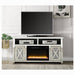 - Brighten up your living space with the Noralie TV stand with a fireplace. In an alluring mirrored and faux diamond finish to showcase your glamourous side. The media shelf has cable management cutouts to keep cables out of sight to preserve the beautiful look of the piece. The touch panel LED fireplace features adjustable temperature control and a timer function.
