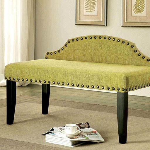 Faulk Espresso Bench, 63"W X 16"D X 19 1/2"H, 41.8lbs. The bench offers a fabric upholstered seat along with nailheads dotting the trim. Simple, an...